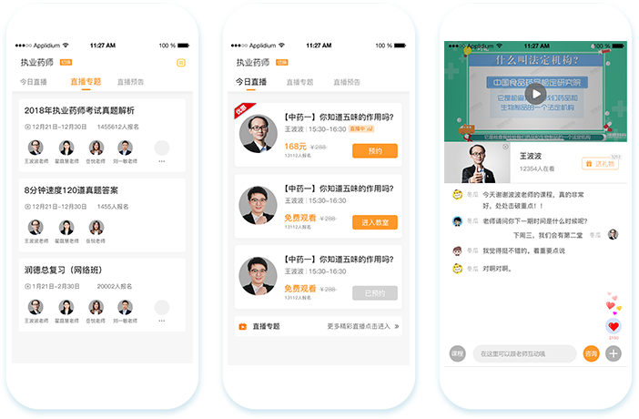 对医药护考题进行多年研究的资深讲师,在线教授考试技巧,模拟真实课堂,可与老师实时互动。配套直播日历,直播内容一目了然,课程可无限回放,不错过每一场直播。